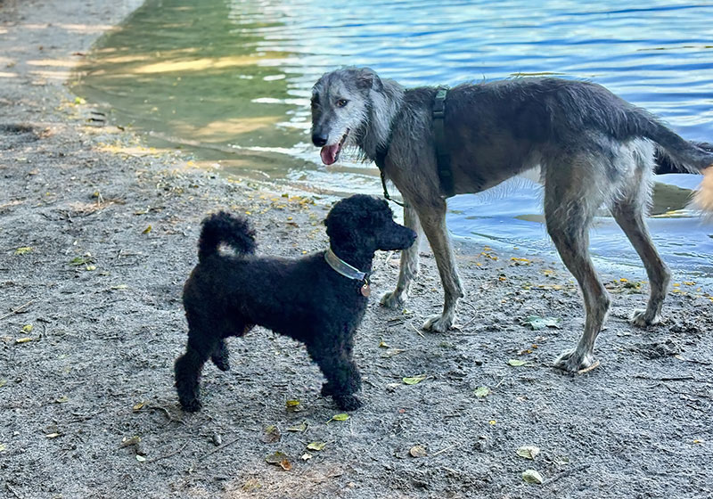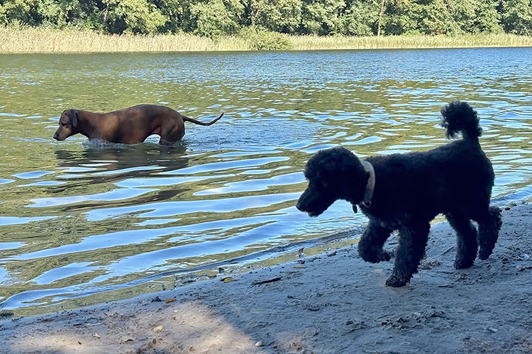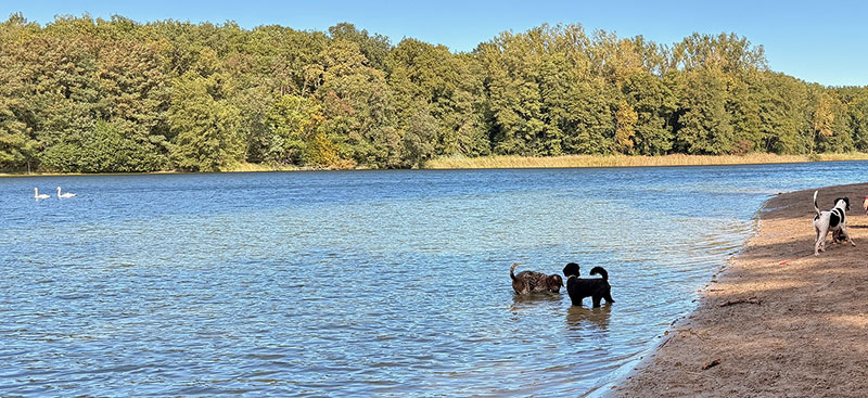 | 26.09.2025: In dieser Woche haben wir endlich wieder ein Treffen mit Jella geschafft - schön war es wieder! Es war diesmal deutlich leerer im Auslaufgebiet - das war anfangs richtig komisch? Aber am See ware es dann doch fast wie immer und leider begann es für Jella mit einem Wespenstich...:/ aber dank des Sees konnte schnell gut gekühlt werden und dann war es auch bald vergessen. |