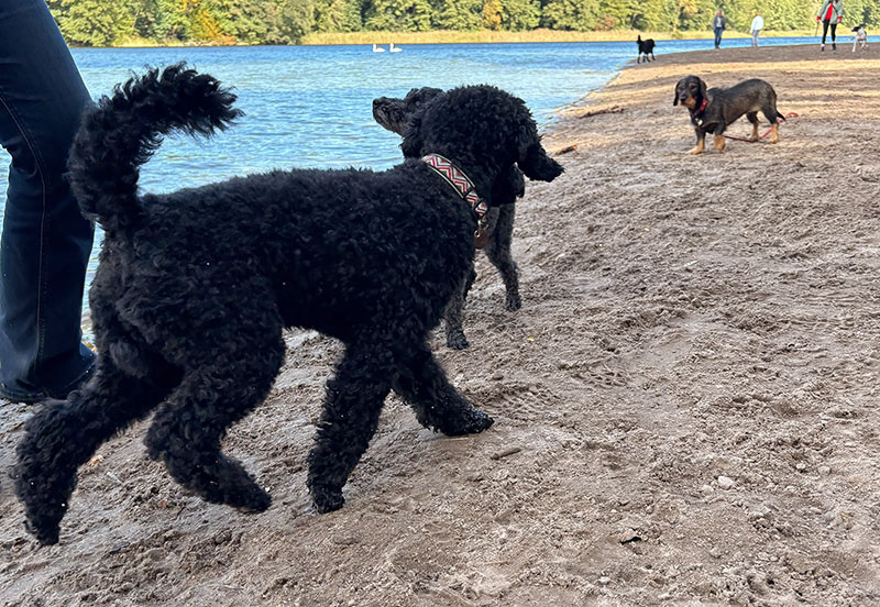 | 26.09.2025: In dieser Woche haben wir endlich wieder ein Treffen mit Jella geschafft - schön war es wieder! Es war diesmal deutlich leerer im Auslaufgebiet - das war anfangs richtig komisch? Aber am See ware es dann doch fast wie immer und leider begann es für Jella mit einem Wespenstich...:/ aber dank des Sees konnte schnell gut gekühlt werden und dann war es auch bald vergessen. |