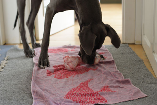 | Allerdings gab es heute nur die Hälfte von dem Knochen, damit es nicht zu Verstopfung führt. Das schien Iska zwar schade zu finden, aber die andere Hälfte gibt es dann morgen. Ob sie das verstanden hat? Wahrscheinlich nicht.... :o) |