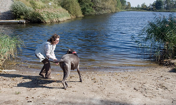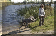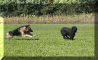 | 10.09.2007: Die hormonelle Phase ist noch immer nicht vorbei. Wenn es sich einrichten lässt fahren wir mit Iska ein Stück raus ins Grüne - in freier Natur ist fast alles in Ordnung... ebenso auf dem Hundeplatz und beim Fährten. Ab und an denkt man nun ist es überstanden - dann pufft an einem LKW die Hydraulik (oder was auch immer...) und Iska bekommt einen ganz flatterigen Blick und will nur noch nach hause.... :/ |