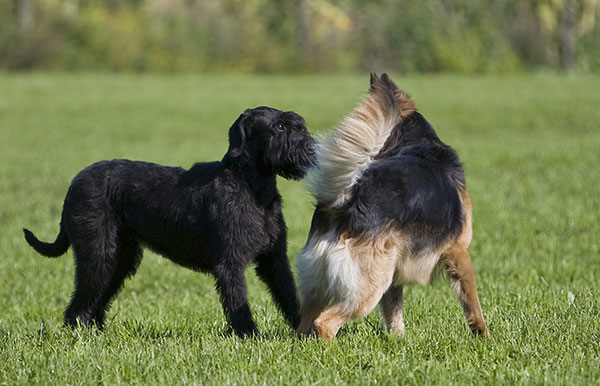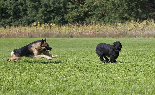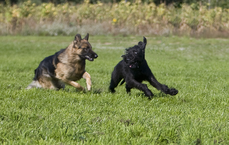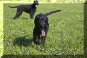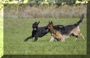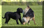| Nach dem Fährten wird etwas Ruhe gehalten, um Iska Erholung zu gönnen und sie nicht überzustrapazieren. Da bietet sich die Gelegenheit für ein paar Fotos - allerdings von anderen Hunden... und ganz besonders gern natürlich von den Riesenschnauzerinnen..... :o) Wobei es da das gleiche Problem gibt wie bei Iska - sobald man (oder frau) sich hinhockt um Bilder zu machen kommt Hundi geflitzt... der *Nachteil* der temperamentvollen Schnauzerinnen ist jedoch dabei - sie bremsen nicht..... :o))) So heißt es, wenn Schnauzi nah dran - zügig wieder hoch!!! im Interesse aller und der Kamera.... |